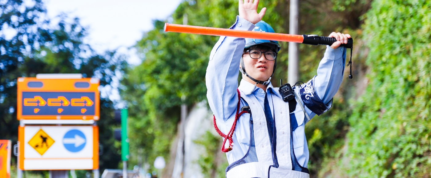 工事現場やイベント、街中など、さまざまな場所で人と車の安全を守る、社会に必要とされる仕事です。未経験でも大丈夫。あなたの一歩が、街の安心につながります。